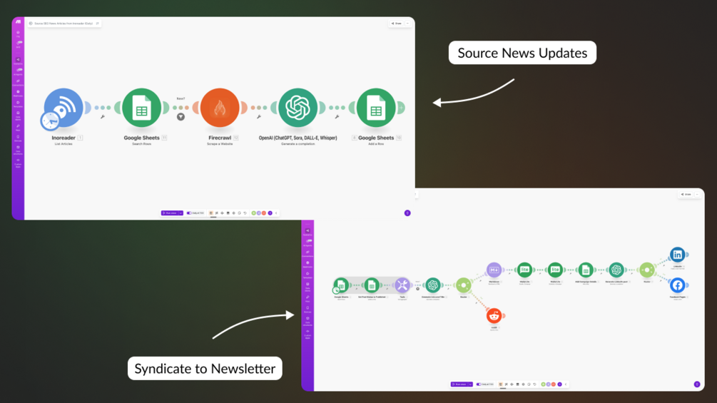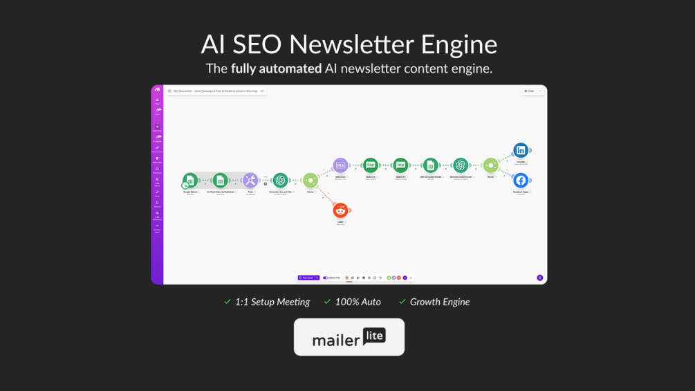 This system pulls fresh SEO updates from trusted sources every morning, scrapes the content, summarizes the key insights, builds your newsletter automatically, and (optionally) posts the highlights to LinkedIn and Reddit to grow your visibility.