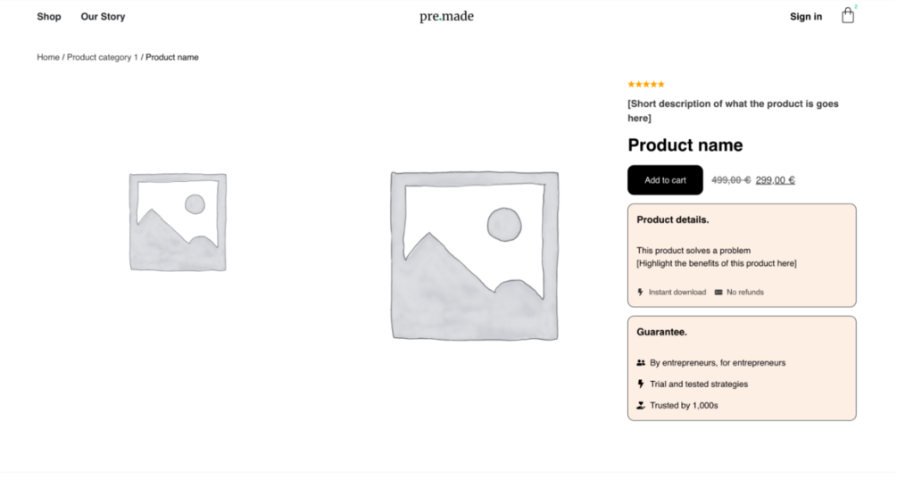 The ultimate E-commerce website template blueprint. Don't start a website from scratch, use a blueprint (like this one).