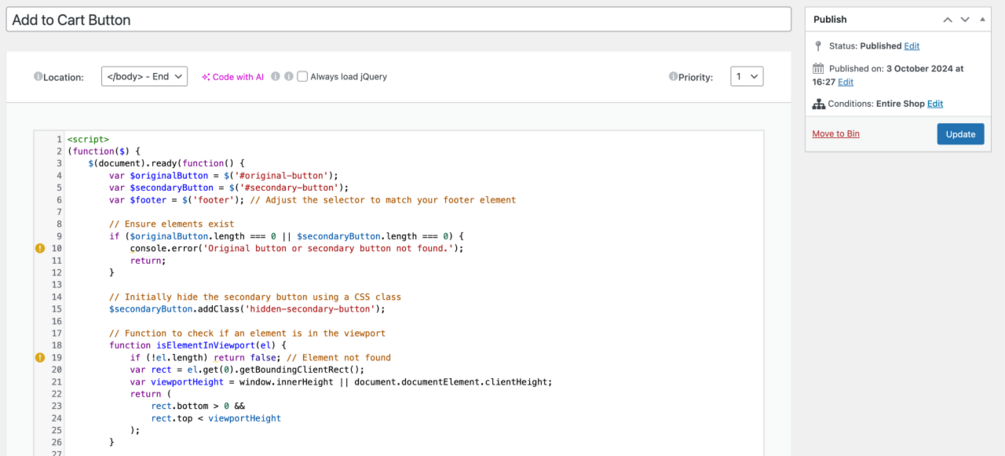 Custom Coded Add to Cart Popup Button using Javascript | Activates/deactivates on Scroll