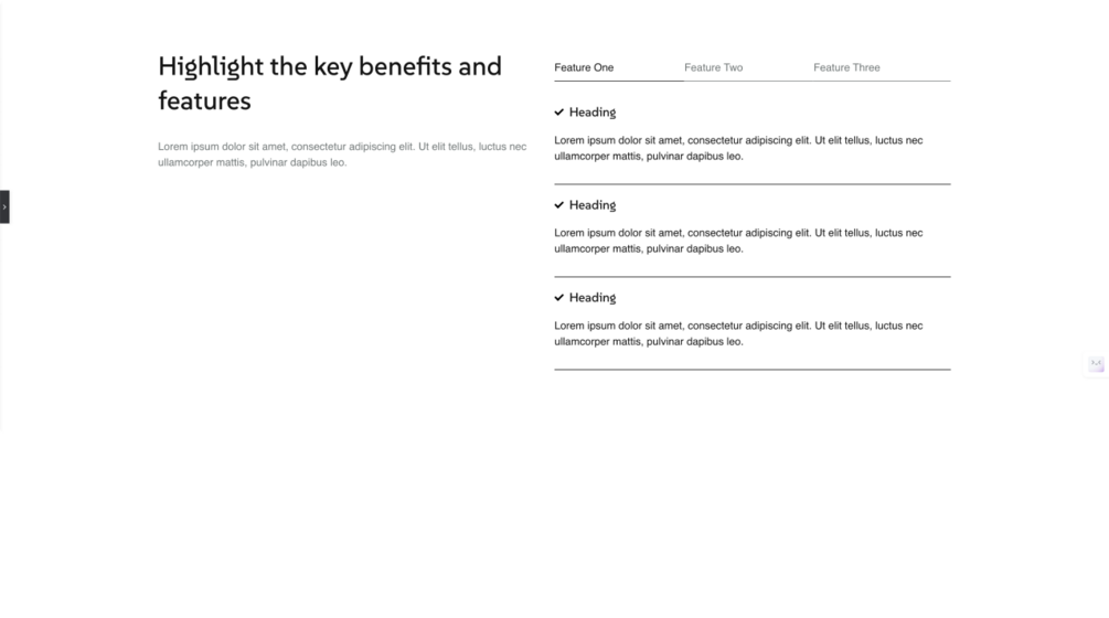 Highlight your product benefits with this responsive tabs section.